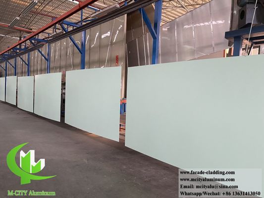 The metal cladding panel is made of high-quality high-strength aluminum alloy sheet, and its commonly used thickness is 1.5mm, 2.0mm, 2.5mm, 3.0mm. The maximum width of the sheet is within 2000mm, the maximum length is within 6000mm, and the aluminum alloy series is 3003-H14 or 1100-H14. It consists of a panel, reinforce bar and bracket. The corner bracket can be directly stamped from the panel, bent and formed, or the corner bracket can be riveted on the small folding edges of the panel. The reinforce bar are connected to the welding screws behind the board surface, making it a solid whole, which greatly enhances the strength and rigidity of the solid aluminum cladding panel, and ensures the flatness and resistance to wind pressure and earthquake resistance of the aluminum cladding in long-term use. If sound insulation is required, high-efficiency sound insulation materials can be installed inside the aluminum panel.