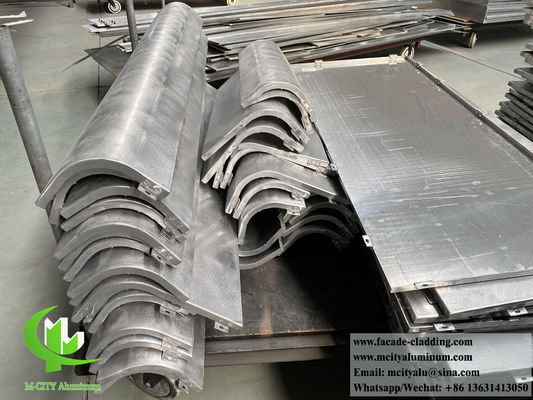 The metal cladding panel is made of high-quality high-strength aluminum alloy sheet, and its commonly used thickness is 1.5mm, 2.0mm, 2.5mm, 3.0mm. The maximum width of the sheet is within 2000mm, the maximum length is within 6000mm, and the aluminum alloy series is 3003-H14 or 1100-H14. It consists of a panel, reinforce bar and bracket. The corner bracket can be directly stamped from the panel, bent and formed, or the corner bracket can be riveted on the small folding edges of the panel. The reinforce bar are connected to the welding screws behind the board surface, making it a solid whole, which greatly enhances the strength and rigidity of the solid aluminum cladding panel, and ensures the flatness and resistance to wind pressure and earthquake resistance of the aluminum cladding in long-term use. If sound insulation is required, high-efficiency sound insulation materials can be installed inside the aluminum panel.
