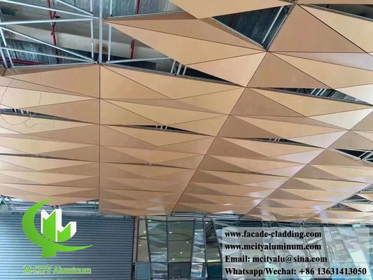 Premium 3D shape PVDF golden aluminum tiles designed for both exterior and interior architectural applications, offering exceptional durability and aesthetic appeal.