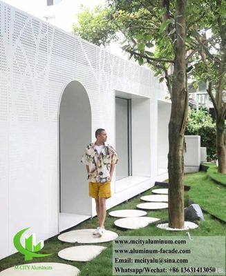 Professional manufacturer M-City Aluminum offers custom external metal screens made from powder-coated white aluminum perforating sheets. Our experienced design team and advanced CNC facilities enable us to produce aluminum panels according to your specific requirements for dimensions, specifications, shapes, structures, colors, and budgets.